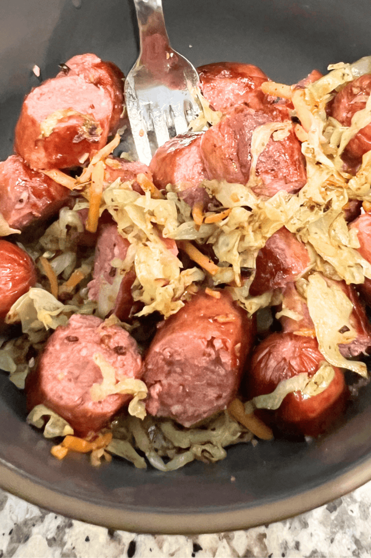- For variety – swap Polish sausage for chicken sausage, and use a broccoli slaw blend instead of cabbage.
